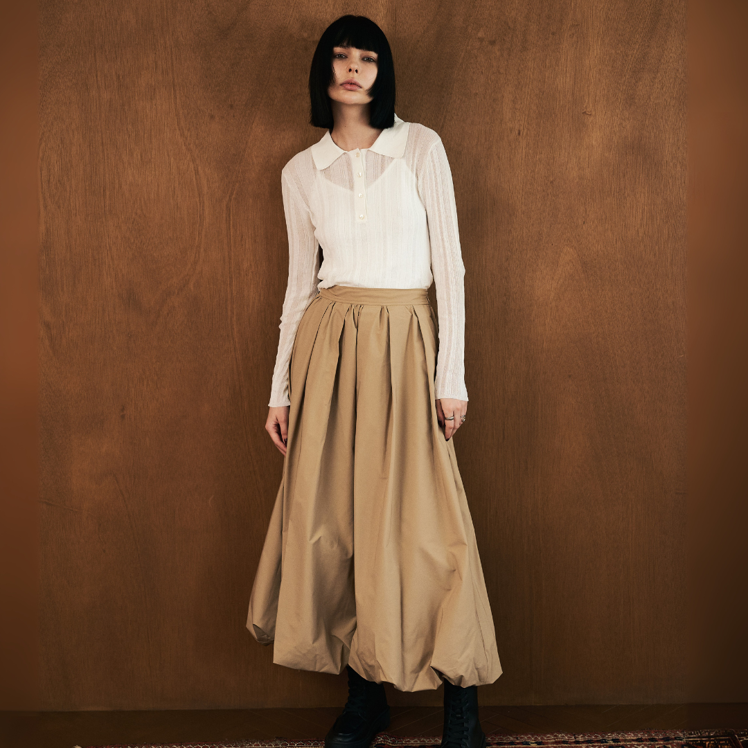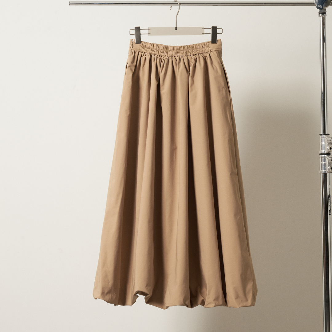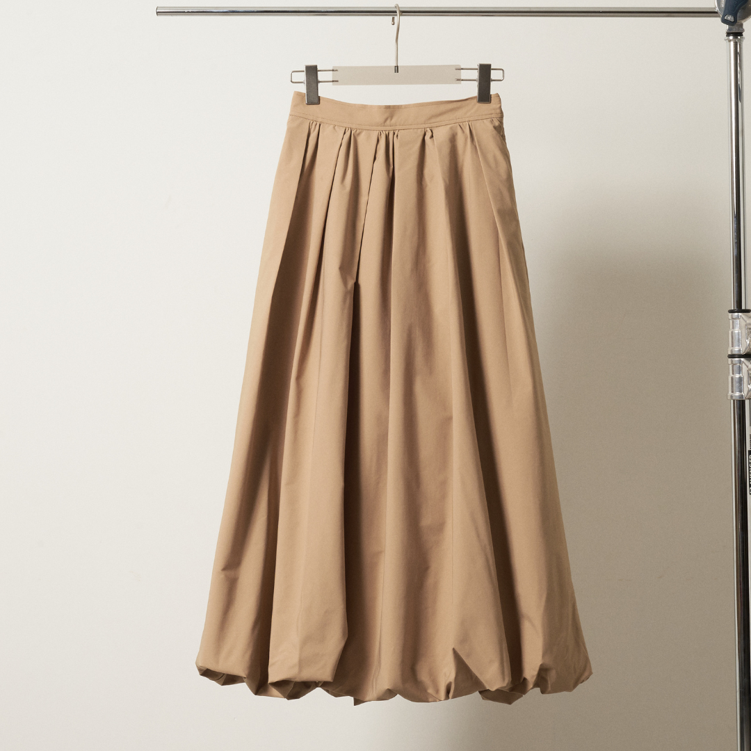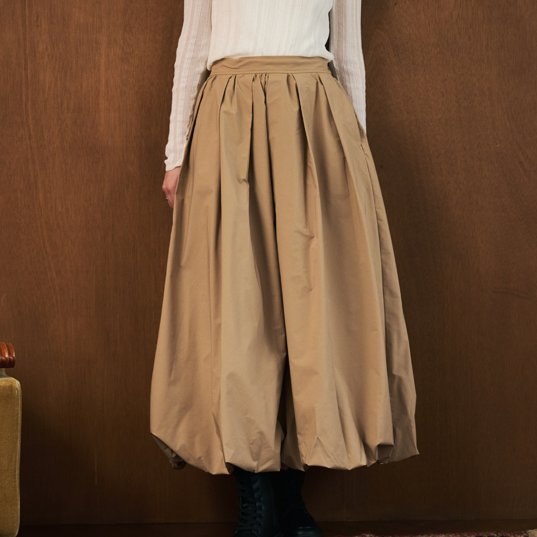 ・ハリとボリューム感のあるポリエステル素材を使用し、タックとギャザーで立体的なバルーンシルエットを表現。